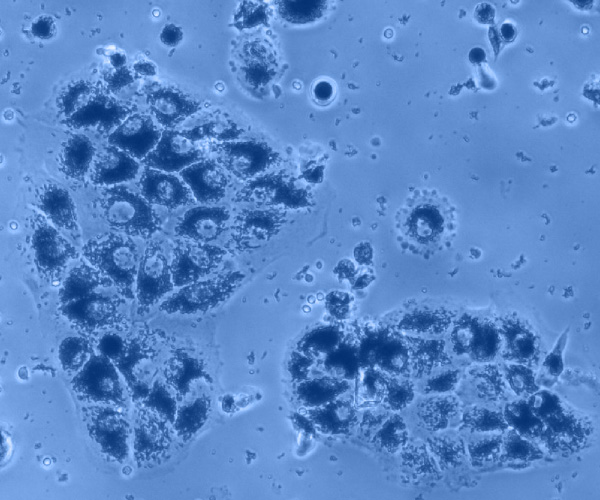Cellules cultivées in vitro et observées au microscope à contraste de phase : cellules de l’épithélium pigmenté rétinien © Valérie Forster. Institut de la Vision
